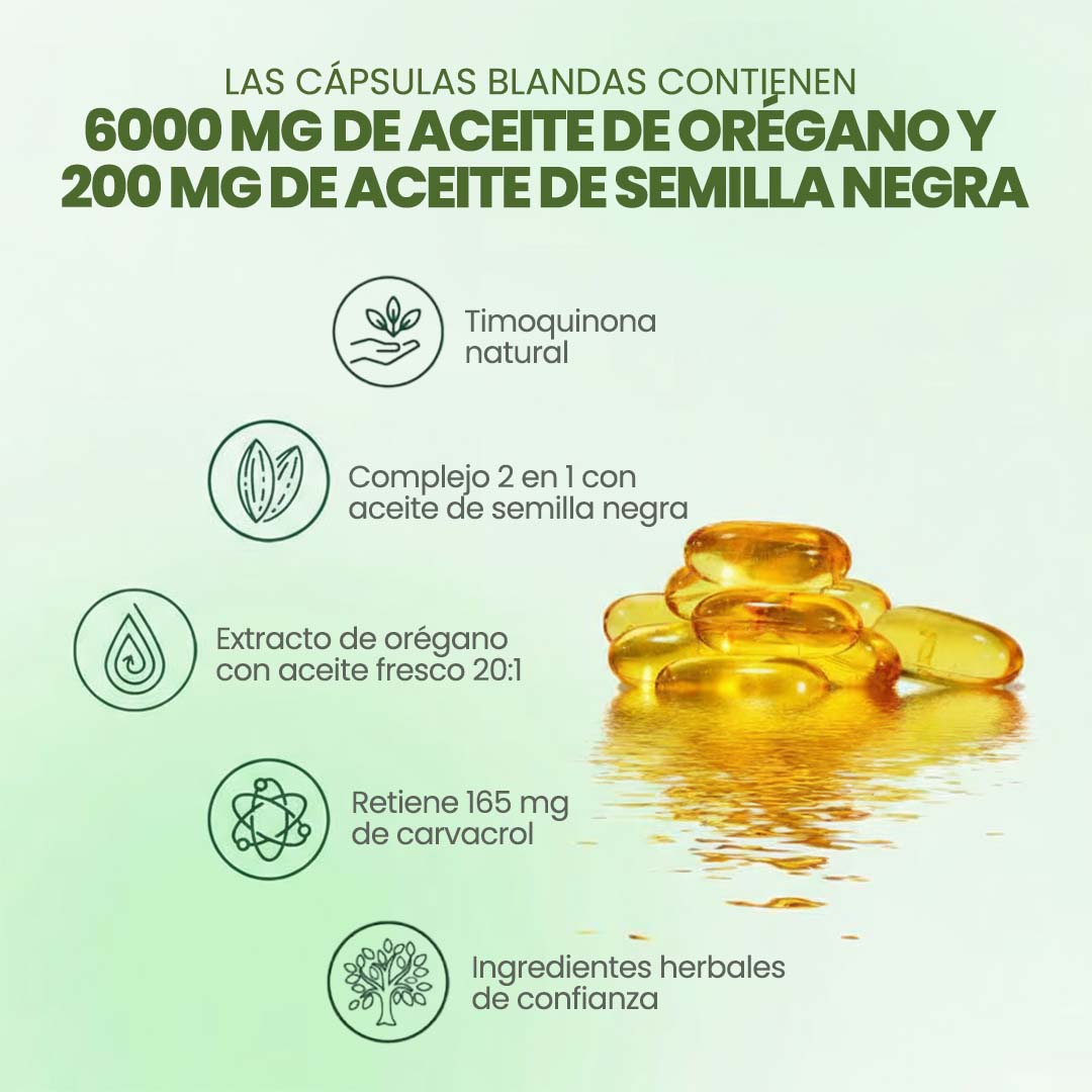 Un suplemento de orégano y semilla negra de alta potencia que busca potenciar el sistema inmune, favorecer la salud digestiva y ofrecer soporte antioxidante.