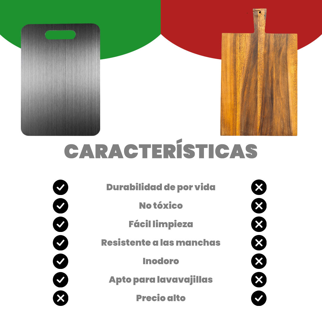 Dura toda la vida. Diseñada con titanio de alta calidad, esta tabla de cortar está hecha para resistir años de uso sin desgastarse.